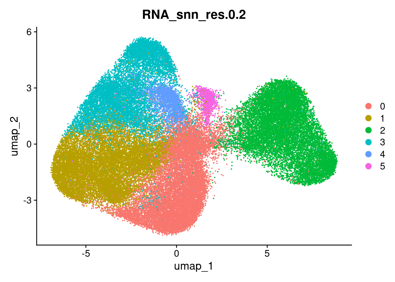 so <- FindClusters(so, resolution = 0.2 )  # A low resolution, fewer clusters## Modularity Optimizer version 1.3.0 by Ludo Waltman and Nees Jan van Eck