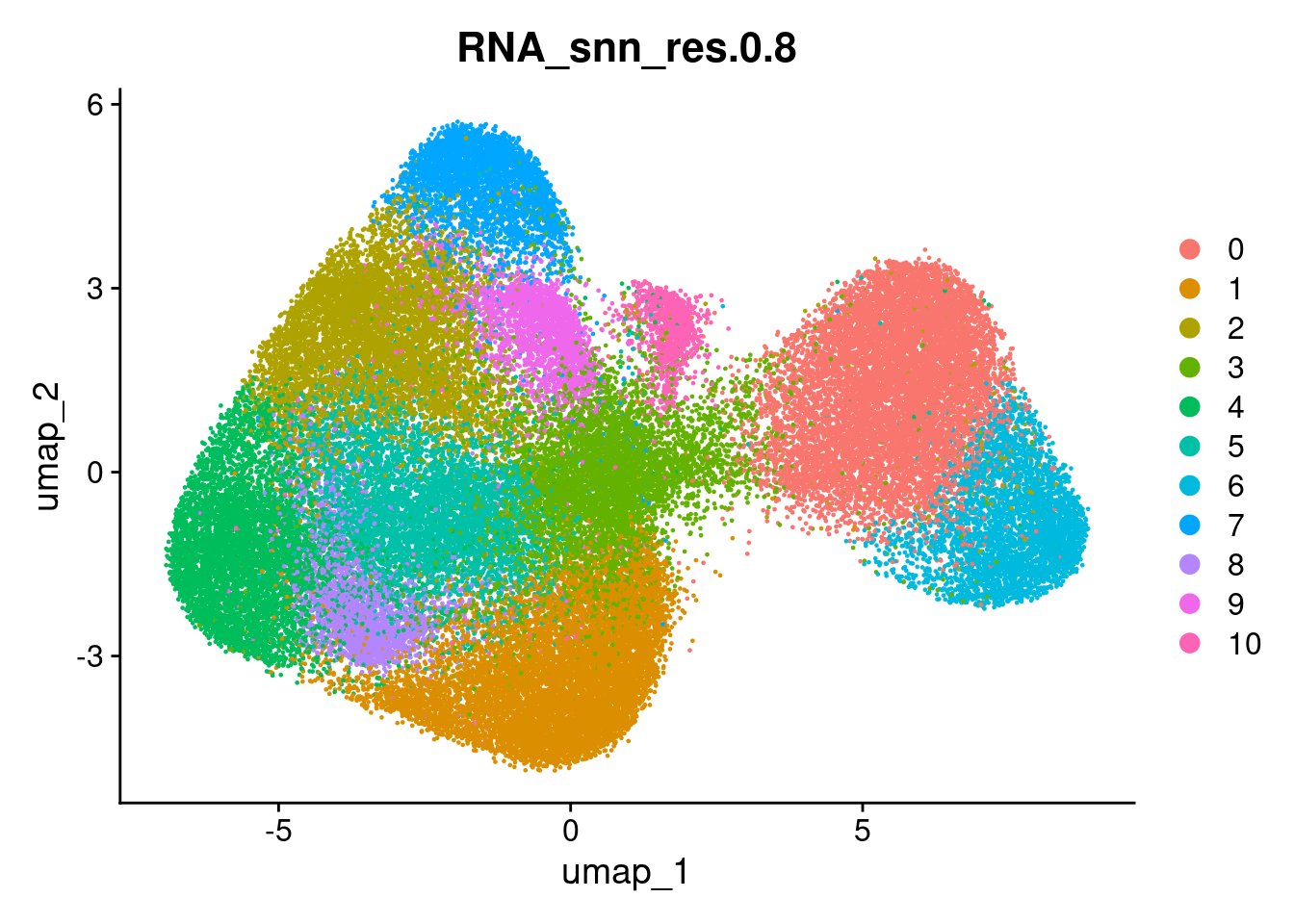 so <- FindClusters(so, resolution = 0.8)  # Rerun if you've been trying other resolutions