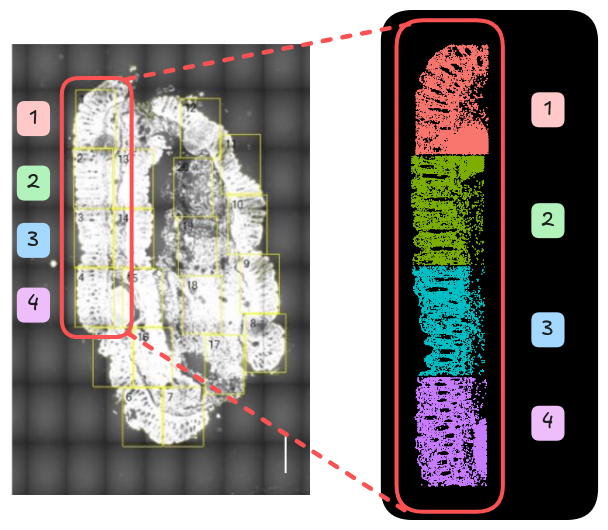 Xenium uses a wide-field fluorescence microscope for automated image acquisition across a larger, continuous imaging area. This approach allows Xenium to map gene expression over the entire tissue region selected by the user, rather than stitching together multiple small, distinct FOV images.