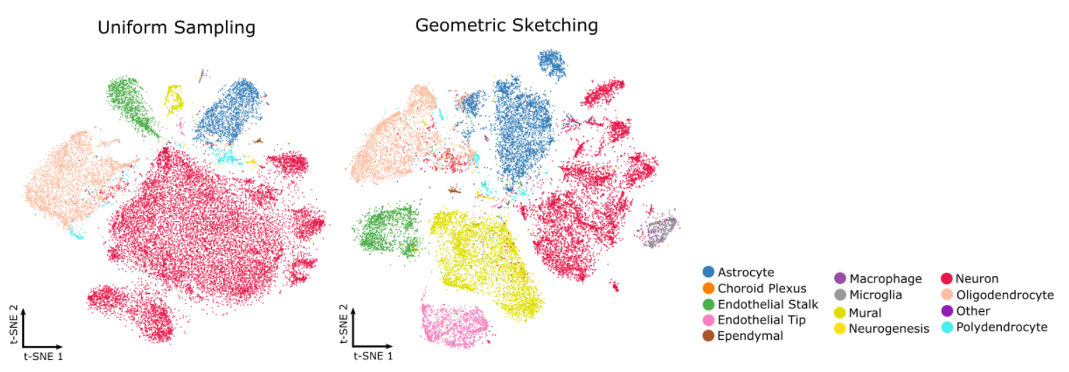 For more details, see Seurat’s sketch-based analysis vignette2\(^,\)3 and the GeoSketch method description4 for a Python alternative.