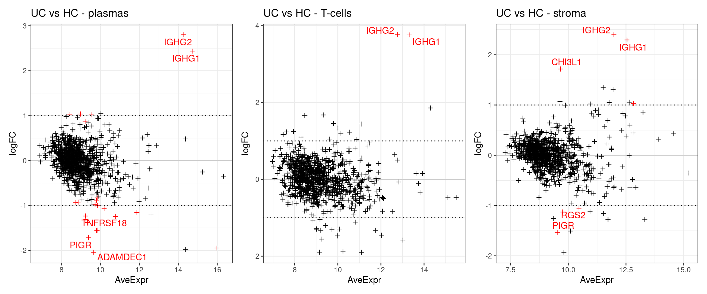Note that there are many other approaches to calculate differential expression in this kind of data - including those that make use of individual cells; see review (Soneson and Robinson 2018).